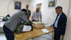 وقد تسلم المواضيع رؤساء مراكز الامتحانات شخصيا على مستوى المديرية الإقليمية، بحضور رجال الأمن والدرك الملكي، الذين سيصاحبون رؤساء المراكز إلى مراكز إجراء الامتحانات، لضمان وصولهم في أحسن الظروف، فقد كانت عملية التوزيع مؤمنة ومضبوطة ومسؤولة، وعرفت تنظيما محكما مصاحبا بإجراءات أمنية مشددة وصارمة.