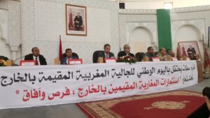 وأضاف العامل إبراهيم أبو زيد “هنا لابد أن نستحضر ما جاء في الخطاب الملكي السامي بمناسبة الذكرى 69 لثورة الملك والشعب يوم 20 غشت 2022 حيث قال جلالته : ”أما فيما يتعلق بإشراك الجالية في مسار التنمية والذي يحظى بكامل اهتمامنا، فان المغرب يحتاج اليوم، لكل أبنائه، ولكل الكفاءات والخبرات المقيمة بالخارج، سواء بالعمل والاستقرار بالمغرب، أو عبر مختلف أنواع الشراكة، والمساهمة انطلاقا من بلدان الإقامة. فالجالية المغربية بالخارج، معروفة بتوفرها على كفاءات عالية، في مختلف المجالات، العلمية والاقتصادية والسياسية، والثقافية والرياضية وغيرها. وهذا مبعث فخر للمغرب والمغاربة جميعا. وقد حان الوقت لتمكينها، من المواكبة الضرورية، والظروف والإمكانات، لتعطي أفضل ما لديها، لصالح البلاد وتنميتها ”. (انتهى النطق الملكي).