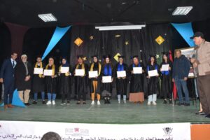 شهد فضاء دار الشباب الحي الإداري بسطات صباح يوم الأحد 15 يناير 2023، حفلا بمناسبة تخرج الفوج الأول من الدورة التكوينية الأولى لمربي ومربيات التعليم الأولي المنظمة من طرف جمعية انفتاح للتربية والتكوين وجمعية اللواء الجامعي للمسرح والسينما بتنسيق مع إدارة دار الشباب الحي الإداري بسطات وبشراكة مع جمعية الوسام للثقافة والتنمية الاجتماعية ودار المسار للنشر والتوزيع “أنشطتي اليومية”.