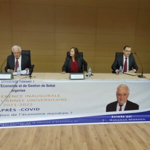 نظمت كلية الاقتصاد و التدبير بسطات، بشراكة مع رئاسة جامعة الحسن الأول، محاضرة افتتاحية برسم الموسم الجامعي 2021/2022 و ذلك يومه الثلاثاء 16 نونبر 2021 ابتداء من الساعة العاشرة و النصف صباحا بالمدرج المركزي لكلية الاقتصاد و التدبير، حول موضوع “ما بعد جائحة كورونا، نحو نموذج جديد للاقتصاد العالمي؟” بالمدرج المركزي لكلية الاقتصاد و التدبير.