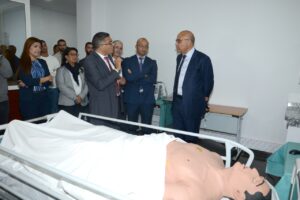 كما زار الوزير المعهد العالي لعلوم الصحة، حيث قام بالوقف على عملية تسجيل الطلبة وانطلاقة الموسم الجامعي بالمعهد، وتم الاطلاع عن كتب على التجهيزات البيداغوجية والعلمية التي يتوفر عليها المعهد، ومعاينة مركز المحاكاة الخاص بعلوم التمريض والقبالة ومركز أخر يعتبر الأول من نوعه في شمال افريقيا يهتم بالتشخيص وتقنيات العلاج الإشعاعي.